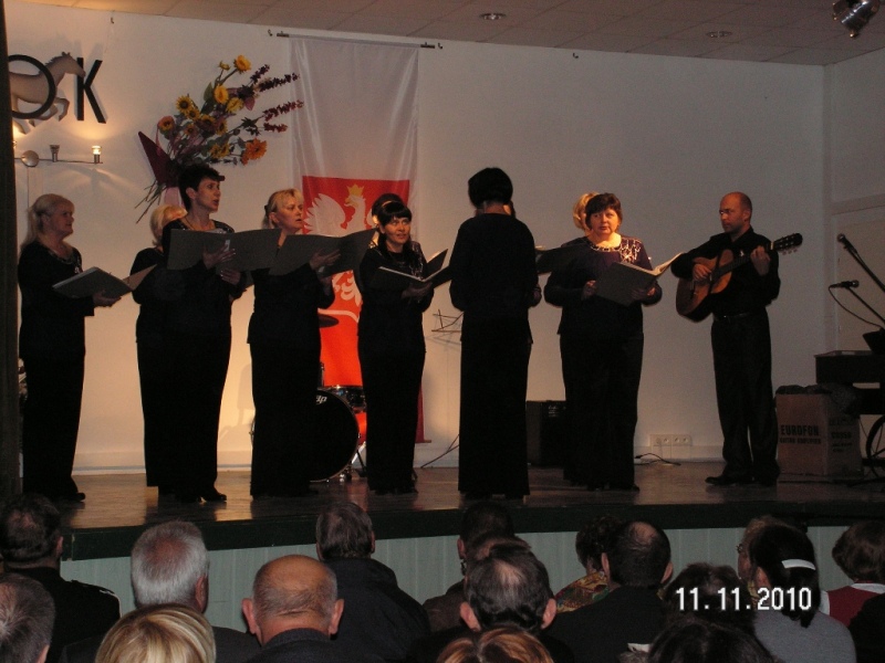 Po południu o godzinie 17.00 nasz chór pojechał do Kobylanki. Został bowiem zaproszony do udziału w Koncercie z okazji Święta Niepodległości. Koncert odbył się w Gminnym Ośrodku Kultury, a prowadziła go Pani Beata Radziszewska. Oprócz nas w koncercie udział wzięli: Zespół „Sześć Złotych” z Ukrainy, Chór „Emanuel” z Ukrainy oraz Zespół Ludowy „Kalina” z Kobylanki.