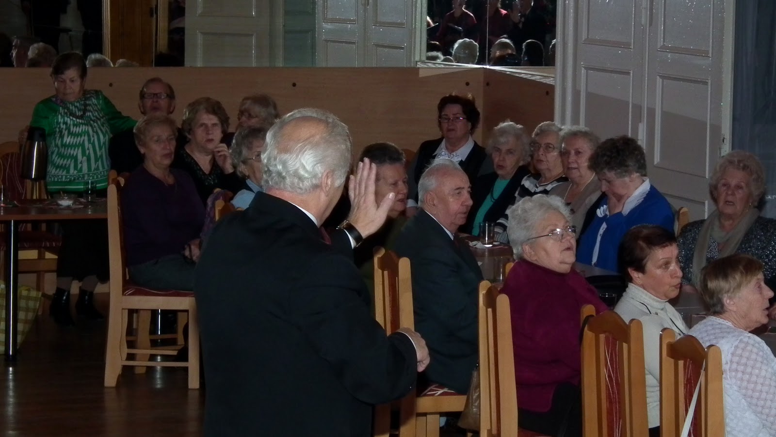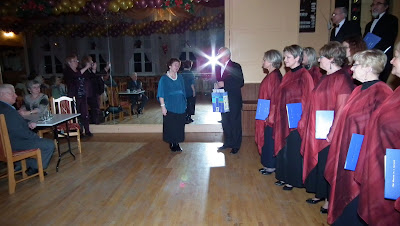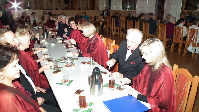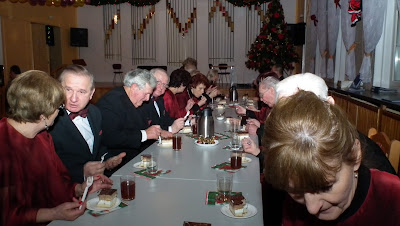 Na dzień 18 stycznia zostaliśmy zaproszeni do „naszego” Domu Kultury Kolejarza przez „Seniorów przy PTTK”. Nasi sympatycy to większość znajomych lub zaprzyjaźnionych z nami osób. Są wśród nich także byli chórzyści. Wykorzystał to dyrygent i włączył gospodarzy do refrenu jednej z kolęd. Spotkanie przebiegało w ciepłej i serdecznej atmosferze. Zostaliśmy także zaproszeni do stołu na ogromne „ciacho” i pyszną kawę.