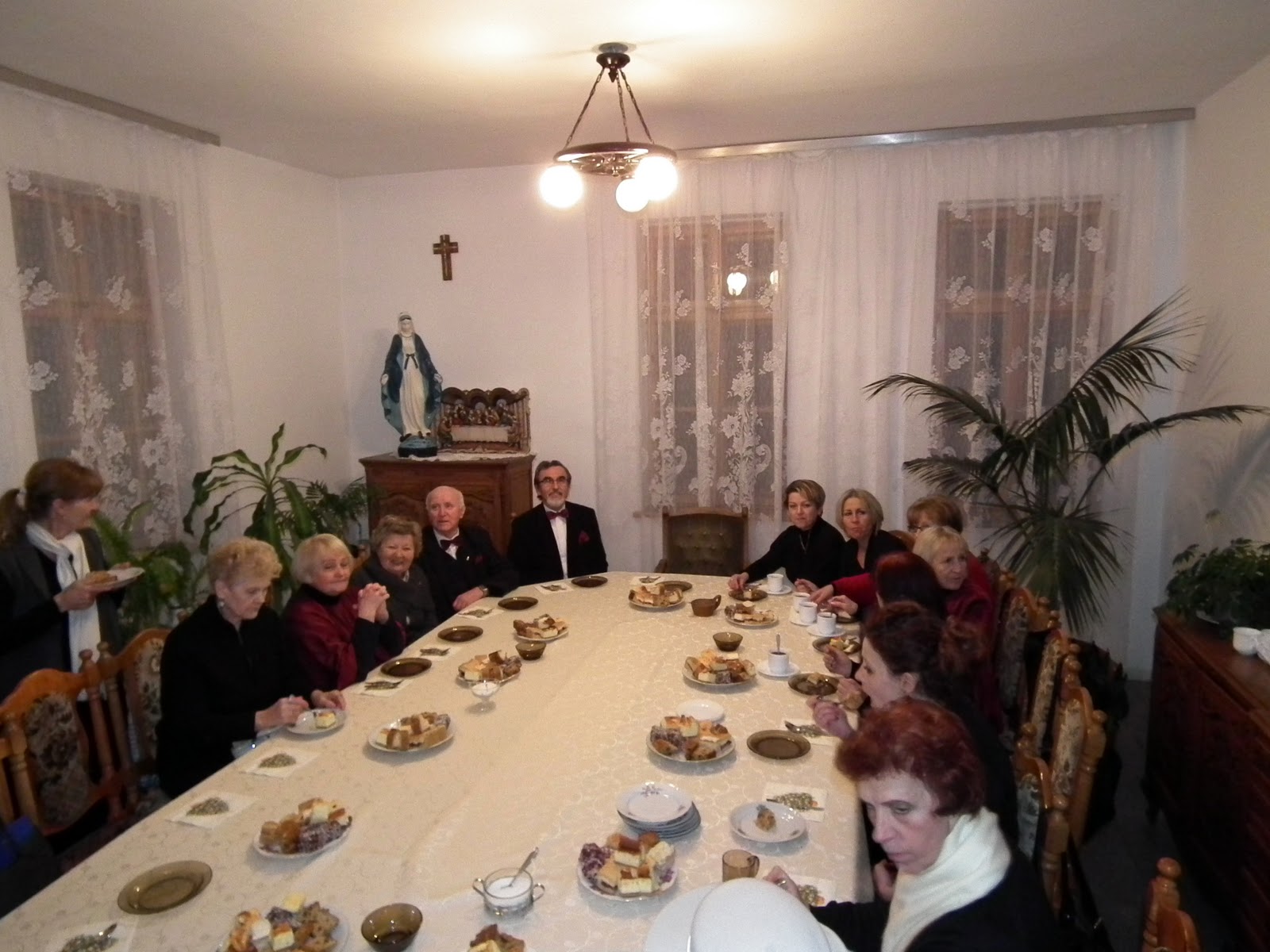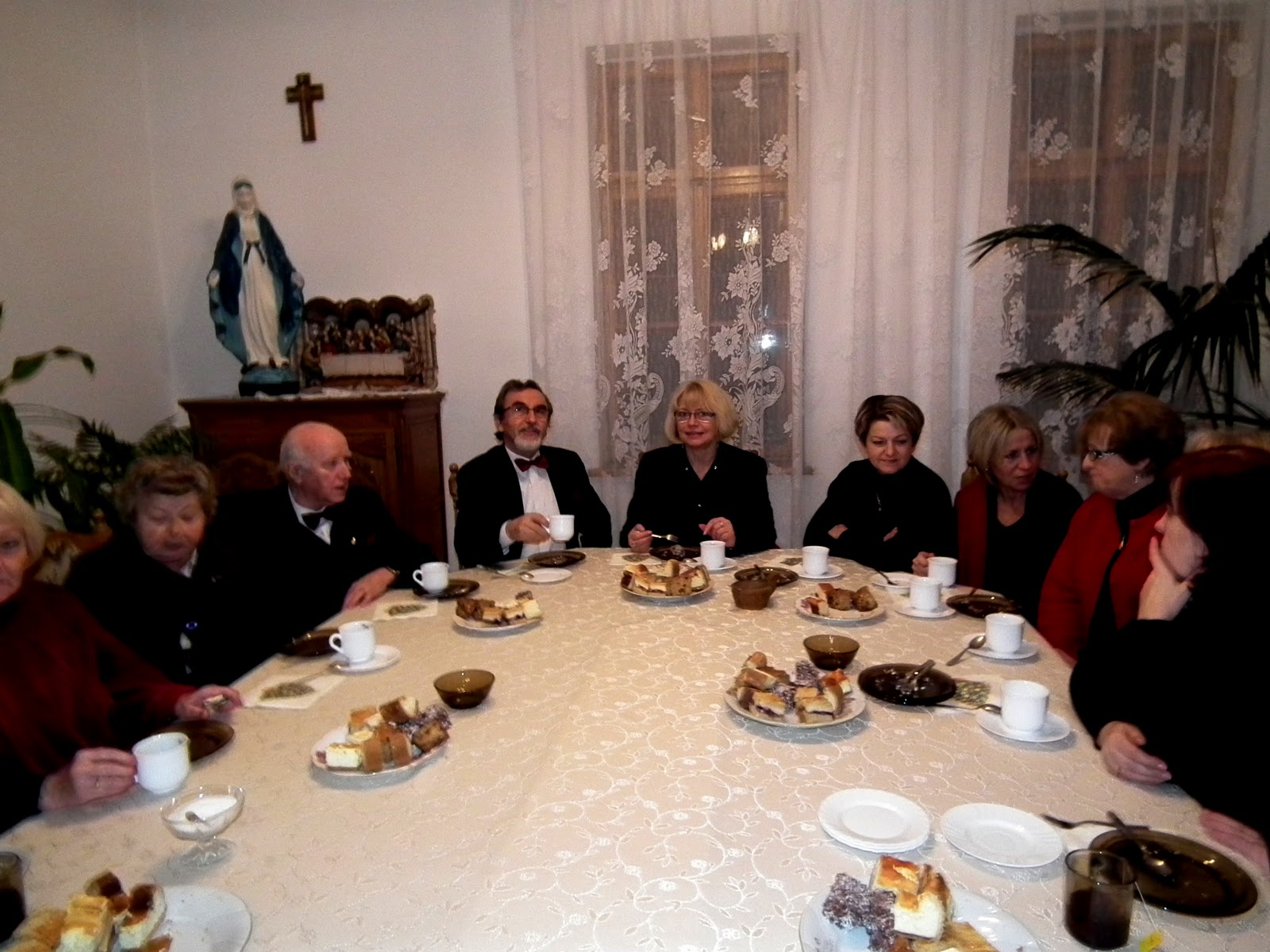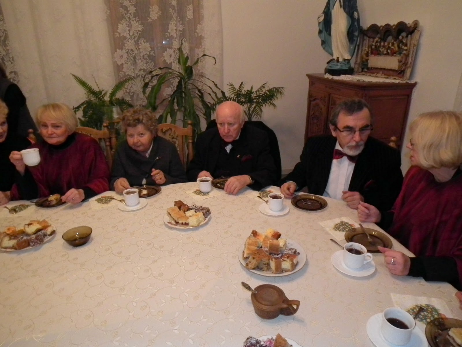 Po krótkiej podróży  wysiedliśmy zadowoleni, gdyż deszcz został za nami. Nasz kolega bas – Zdzisław Kucaj, który jest organistą w tut. parafii wskazał nam drogę na chór, gdzie śpiewaliśmy podczas mszy św. Po mszy chór ustawił się przed ołtarzem i wierni wraz z księdzem Proboszczem wysłuchali koncertu. Stasia Krzyśków jak co roku, przygotowała piękne słowo wiążące. Po koncercie zostaliśmy zaproszeni na ciasto i kawę.