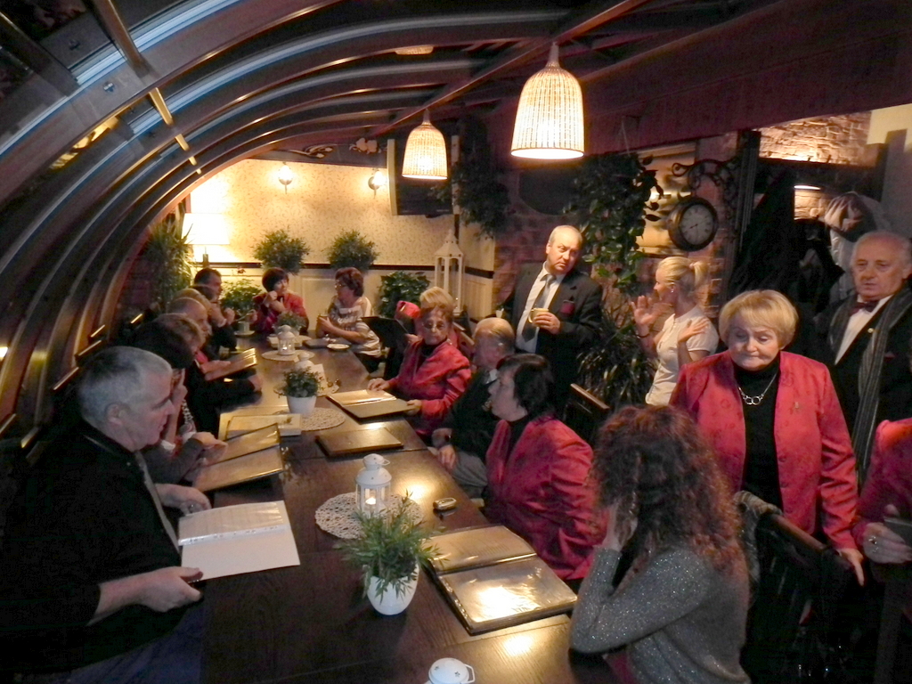 Zakończenie wieczoru niedzielnego odbyło się w Sorrento. Pożegnano delegację zaprzyjaźnionego chóru z Niemiec. Iwonka (członek tamtego chóru) – to cierpliwy i niestrudzony tłumacz. W ogrzanym pomieszczeniu połączono stoliki i w miłej atmosferze (oczywiście były także śpiewy) jubileuszowe spotkanie dobiegało końca.